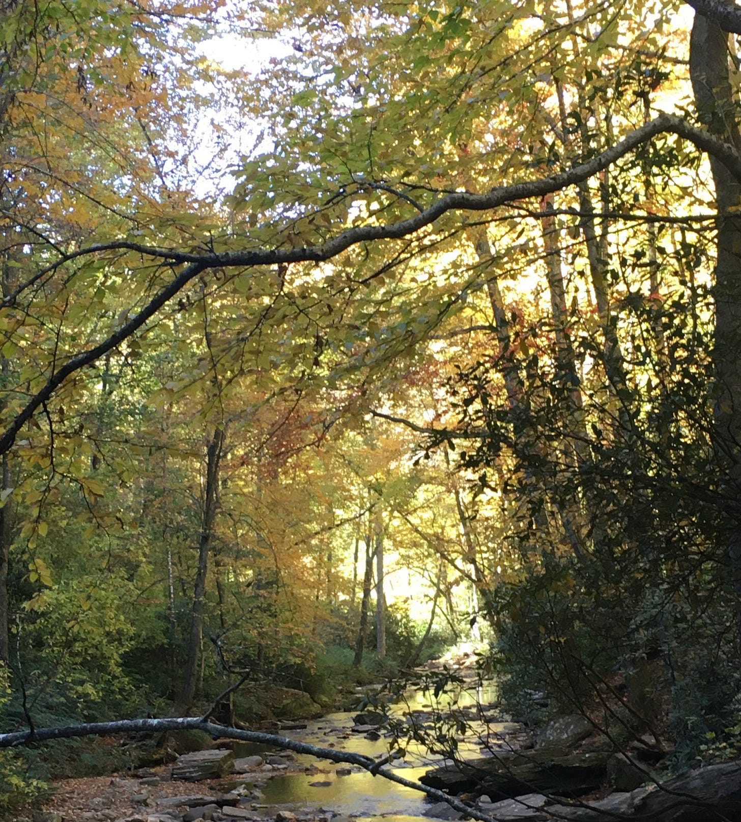Photo by Ed Buckner (Sunrise? Sunset? Downstream from Looking Glass Falls near Hendersonville, NC)